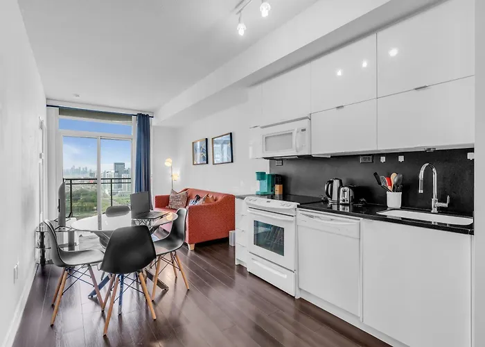 El Lake View Suite - 1 Free Parking Toronto, situado a una distancia de 1 km de la Torre CN, se encuentra a a tan solo 1 km de un importante lugar para familias como el Acuario Ripley's de Canadá.